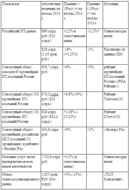 Основные показатели, характеризующие рынок ИКТ России в 2014 г.