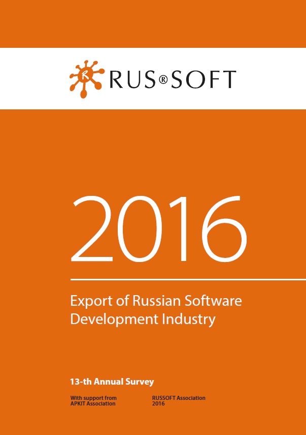 Предлагаю вашему вниманию результаты ежегодного исследования экспортной индустрии разработки программного обеспечения (ПО) в России, которое уже в тринадцатый раз было проведено Некоммерческим партнерством разработчиков программного обеспечения «РУССОФТ» (НП «РУССОФТ») в феврале-апреле 2016 года. В ходе опроса было проведено анкетирование более 130 компаний-участников рынка, дополнительно изучены разнообразные источники информации, получены экспертные оценки от десятков директоров компаний разработчиков ПО.